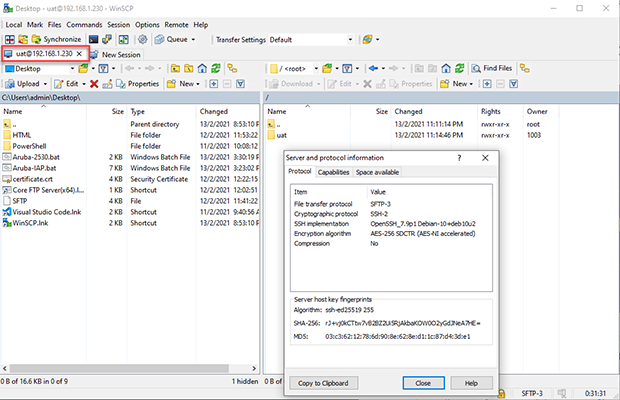 SFTP 服务器支持所有主要的 SSH 算法、AES 和 3DES 加密、FIPS 140-2 加密等。
